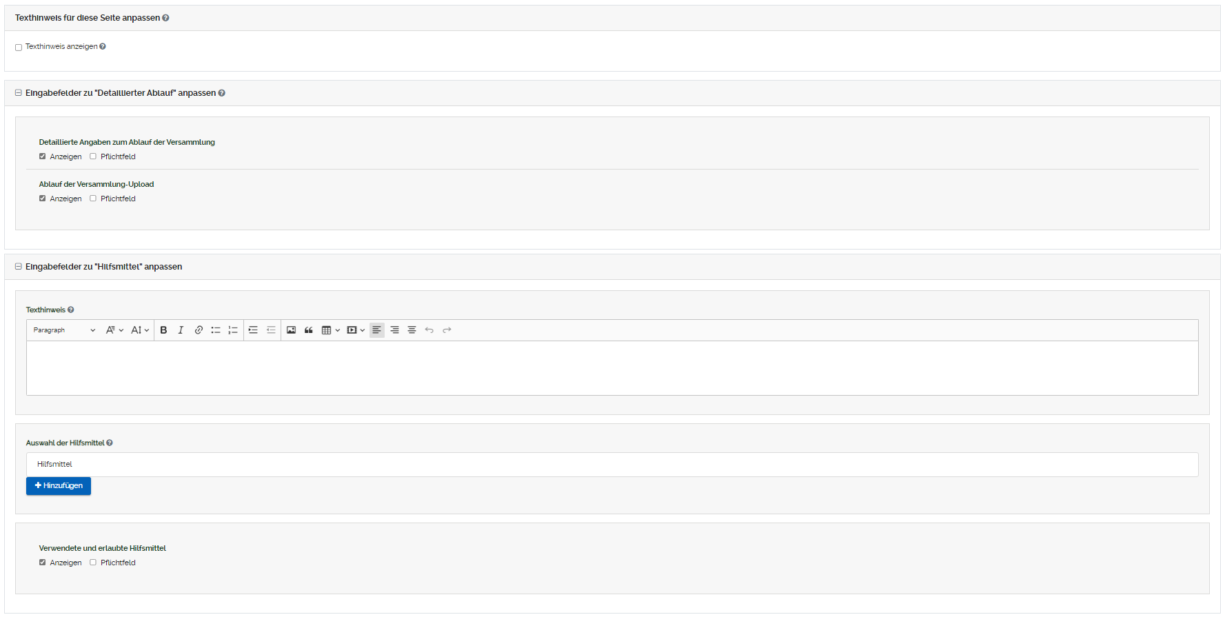 Die Einstellung zum Texthinweis Eingabefelder zu "Hilfsmittel" anpassen" und "Eingabefelder zu Ordnungskräfte anpassen" sind identisch, sie unterscheiden sich nur durch ihren Inhalt.
