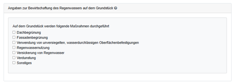 "Angaben zur Bewirtschaftung des Regenwassers auf dem Grundstück"