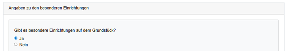 Als nächstes wird, abgefragt, ob es besondere Einrichtungen auf dem Grundstück gibt.