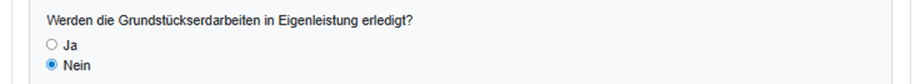 Des Weiteren wird abgefragt, ob die Grundstückserdarbeiten in Eigenleistung gemacht werden.