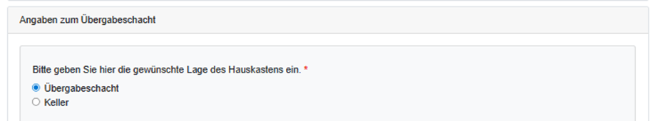 Man wählt aus, ob man den Hauskasten im Übergabeschacht oder im Keller anlegen möchte.