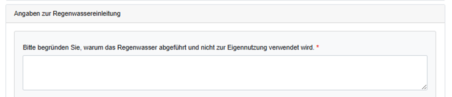 Man gibt an weshalb man das Regenwasser abführen möchte und nicht zur Eigennutzung verwendet.
