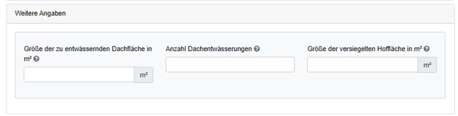 Im letzten Schritt gibt man die Größe der entwässernden Dachfläche an, die Anzahl der Dachentwässerung und die Größe der versiegelten Hoffläche.