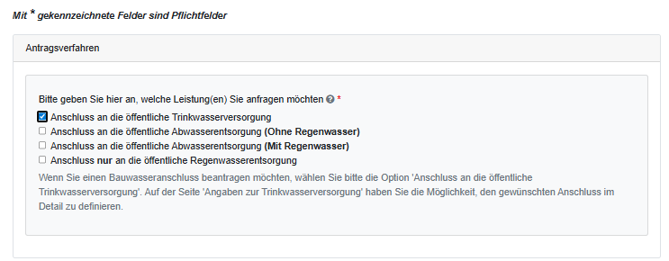 "Antragsverfahren": Man wählt aus welche der vorhandenen Leistungen man anfragen möchte. |