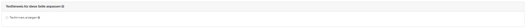 Die Seite "Antragsberechtigung" ist unterteilt in vierAbschnitte: "Texthinweis für diese Seite anpassen" "Zulässige Gemeinden" "Angaben zum Antrag" "Besondere Voraussetzungen" Der Abschnitt "Texthinweis für diese Seite anpassen" befindet sich im oberen Bereich aller Seiten des Online Formulars. Eine detaillierte Erklärung zu der Komponente "Texthinweis" und wie sich diese auf die Vorschau auswirkt finden Sie hier. |
