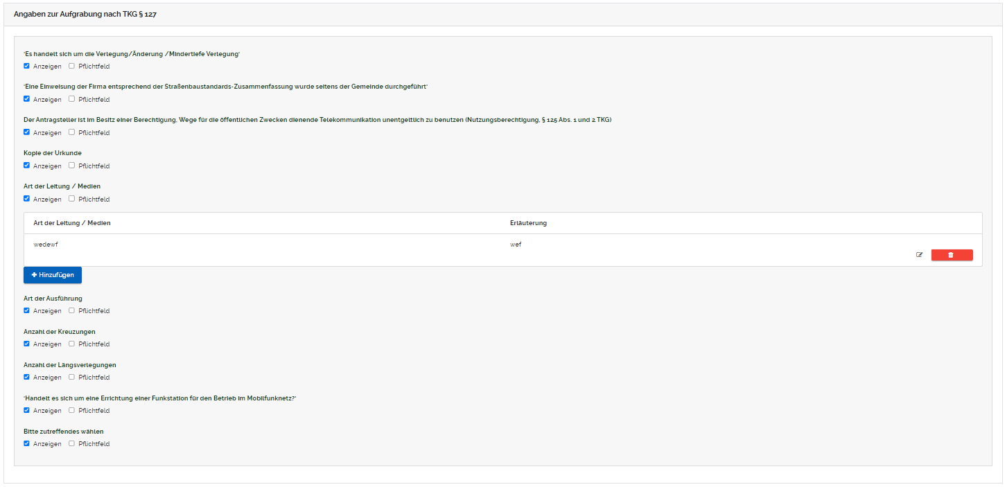 Wie die Seite "Angaben zur Aufgrabung nach TKG § 127" in der Vorschau aussieht, sehen Sie hier.
