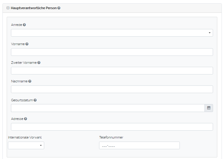 Ob und welche Eingabefelder Pflicht sind, können Sie in der Konfiguration der Seite "Angaben zu den verantwortlichen Personen" anpassen. |