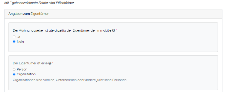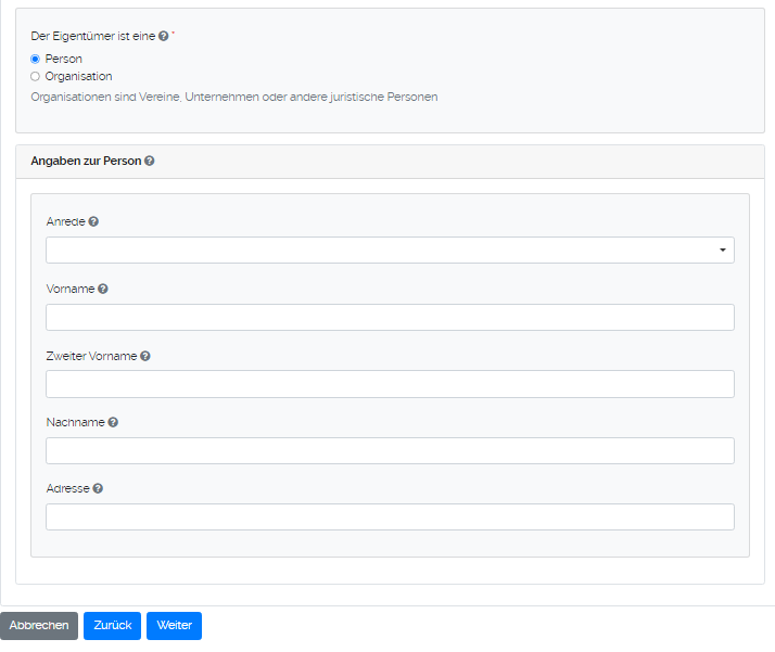 Auf der Seite "Angaben zum Eigentümer"Brauchtumsfeuer" werden dieallgemeine persönlichenAngaben Datenzum des EigentümersBrauchtumsfeuer abgefragt.