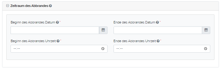 Der Antragsteller kann den Beginn und das Ende (Datum und Uhrzeit) des Abbrandes angeben. |