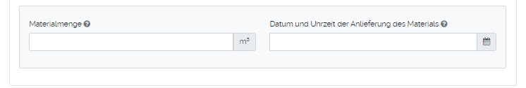 Der Antragsteller muss die ungefähre Materialmenge (Brennmaterial) angeben und das Datum und Uhrzeit der Anlieferung des Materials auswählen.