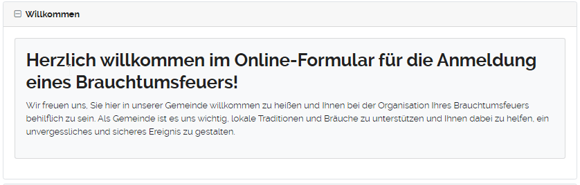 Auf der Seite "Einführung" können Sie alle allgemeinen und wichtigen Informationen anpassen, die auf der gleichnamigen Seite angezeigt werden. Die Seite wird im Formular als erste angezeigt.