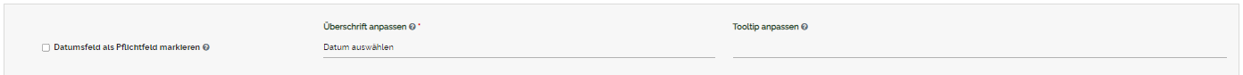 Das Datumsfeld kann als Pflichtfeld markiert werden. Sie können eine Überschrift und einen Tooltip hinterlegen.