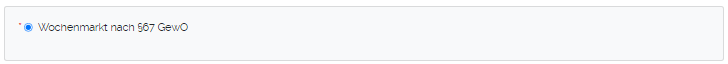 Es kann ausgewählt werden, ob es sich bei dem Antrag um den "Wochenmarkt nach § 67 GewO handelt.