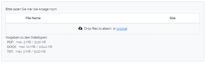 Auf der Seite "Anlagen und Nachweise" werden Angaben abgefragt.