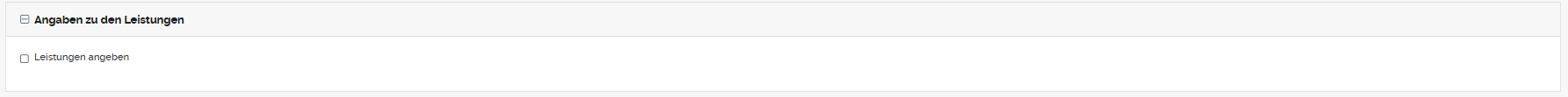 Sie können das Modul „Leistungen“ in Ihrem Formular auch ausblenden. Dies ist der Fall, wenn die Kosten für den jeweiligen Antrag immer gleich sind und es keine Auswahlmöglichkeit für verschiedene Leistungen für den Bürger gibt. Ein Beispiel hierfür ist, wenn Sie als Gemeinde eine „Wohnungsgeberbescheinigung“ zum Festpreis von 10 € anbieten. In einem solchen Fall überspringen Sie das Modul „Leistungen“, indem Sie das Häkchen bei „Leistung angeben“ entfernen, und starten direkt mit den Angaben zu den Gebühren.