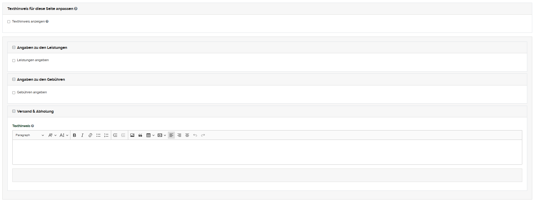 Im Texthinweis können Sie weitere Informationen zur Bearbeitungsdauer und zur Abholung angeben.