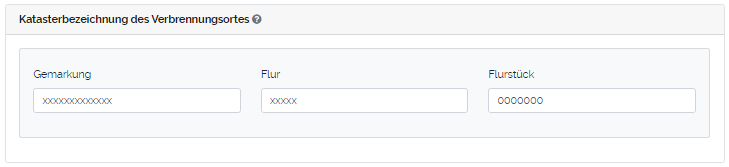 Es kann ebenfalls die Katasterbezeichnung des Verbrennungsortes hinterlegt werden.