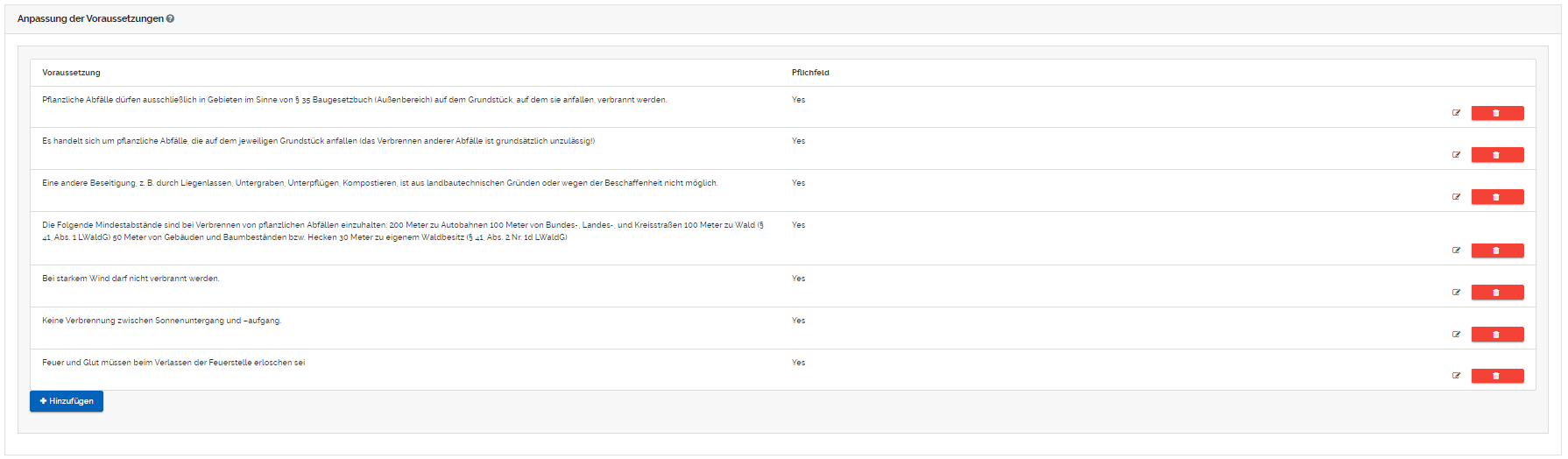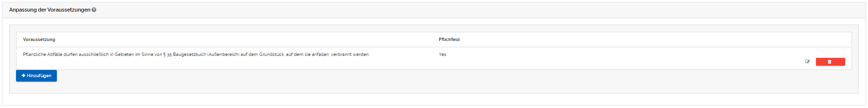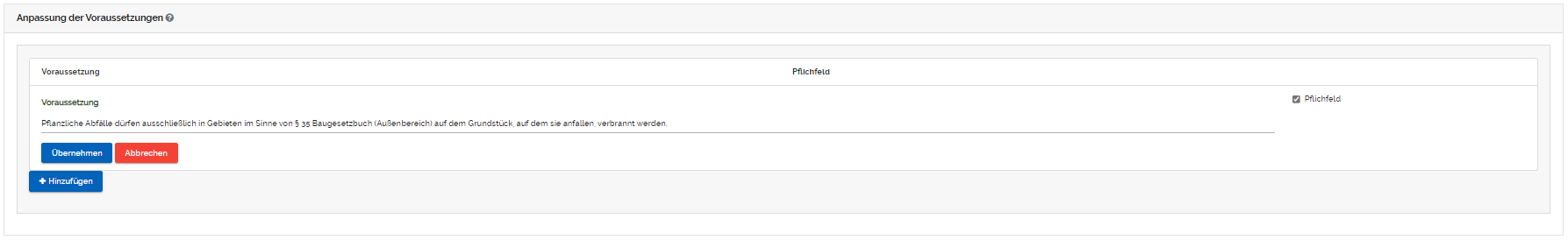 Hier können Sie alle Voraussetzungen eintragen, die gelten um den Antrag zu stellen.
