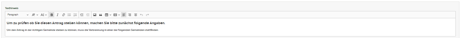 Sie können einen Hinweis hinterlegen, der sich auf die Antragsberechtigung bezieht.