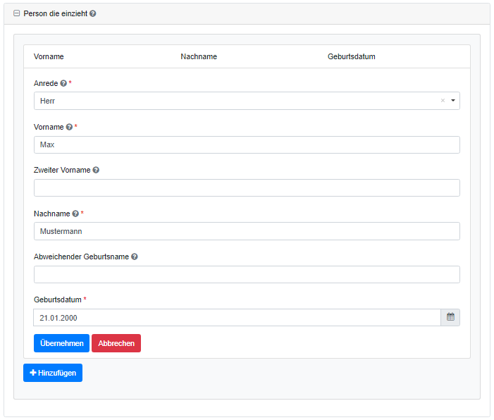 Unter Angaben zur beurkundeten Person werden die persönlichen Angaben eingetragen.